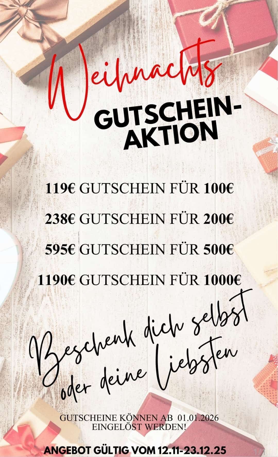 Die Gutscheine vom Angebot können ab dem 02.01.2026 bei uns im Salon eingelöst werden.